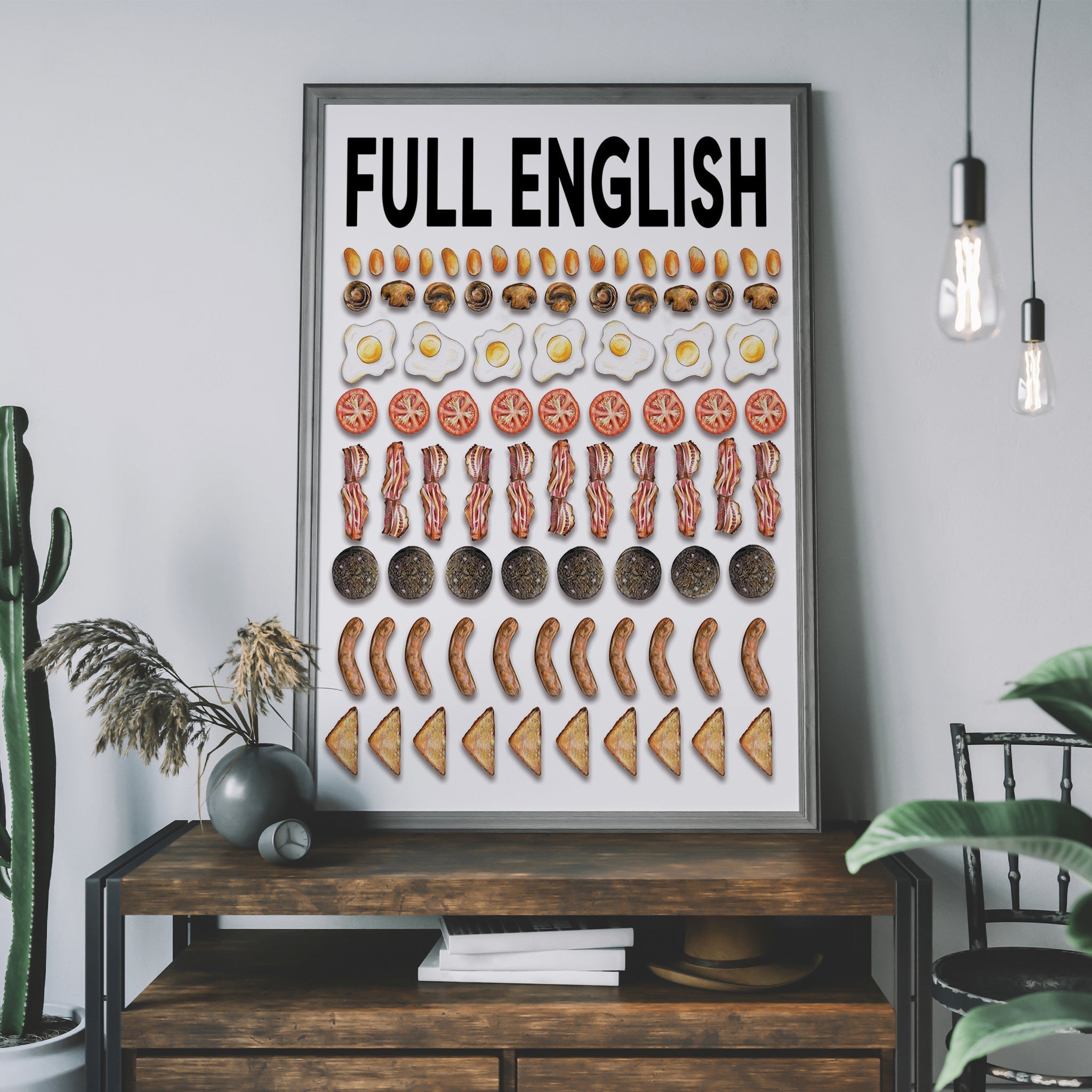 Perfect for food lovers, brunch fanatics, or anyone who can’t resist a hearty fry-up, this quirky artwork brings warmth, humour, and a little British nostalgia into your home.